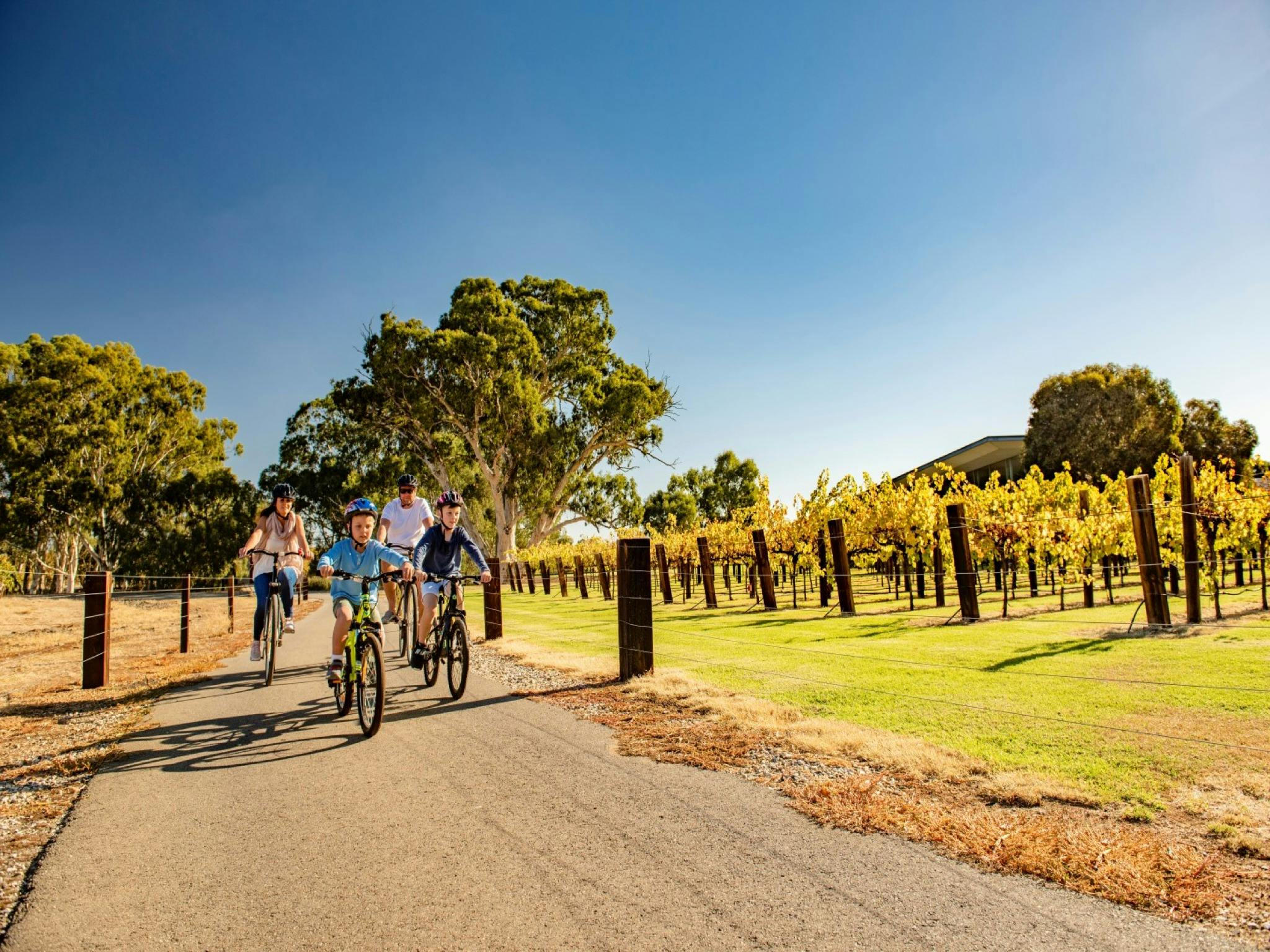 Whether you’re cycling the entire length or enjoying a short section, the trail delivers breathtaking vineyard views, rolling hills, and frequent stops to indulge in cellar doors, cafes, and local produce. With interpretive signage, gentle gradients and dedicated crossings, it’s perfect for families, leisure cyclists, e-bike riders, and walkers alike.