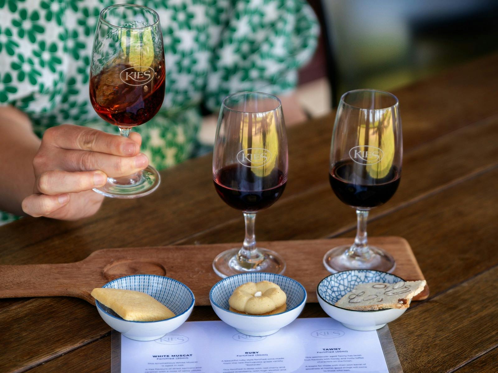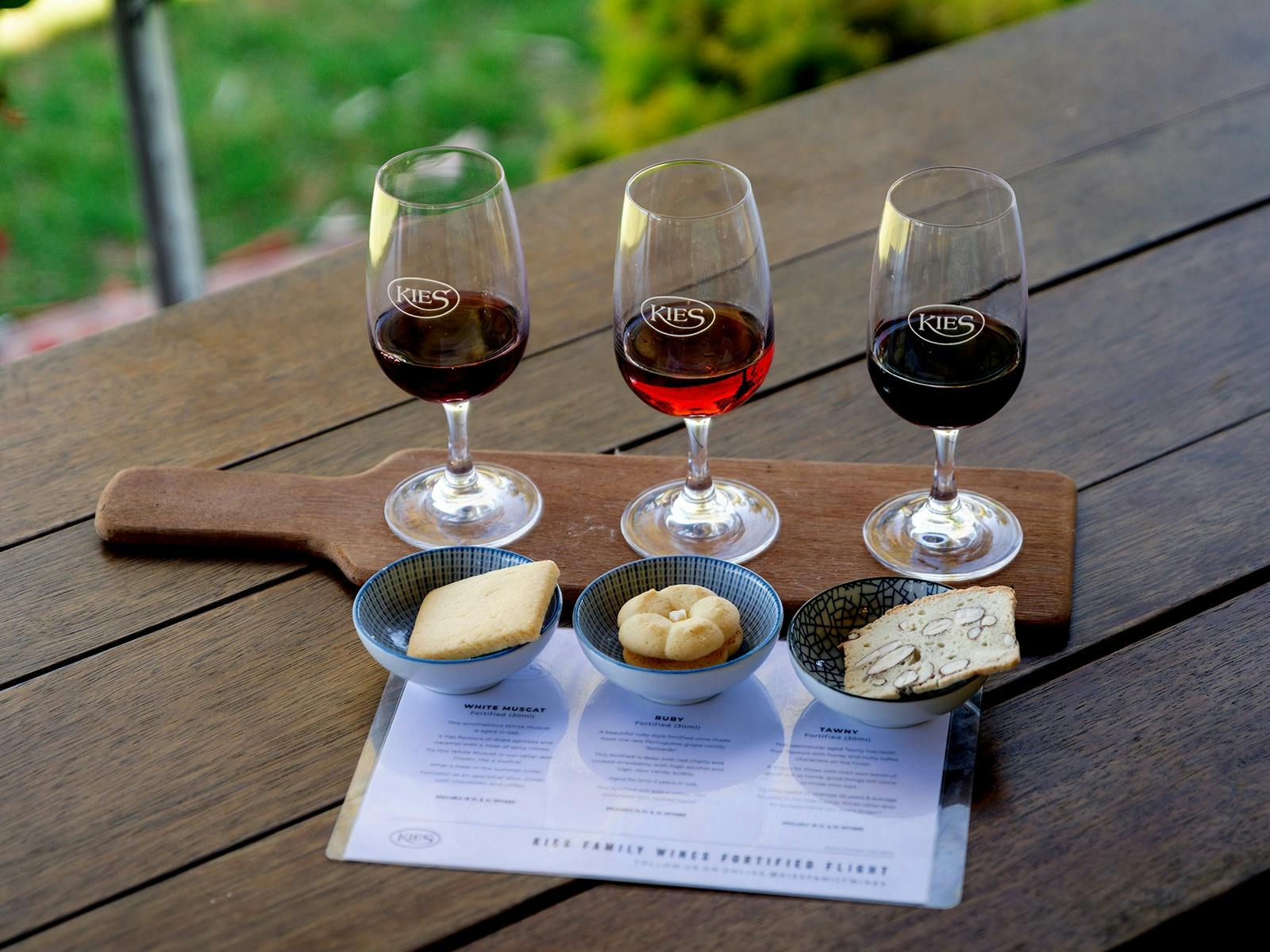 Explore three rare and aged fortified wines from Kies Family Wines, paired perfectly with three individual Barossa Country Biscuits shortbreads, made from age-old German recipes.