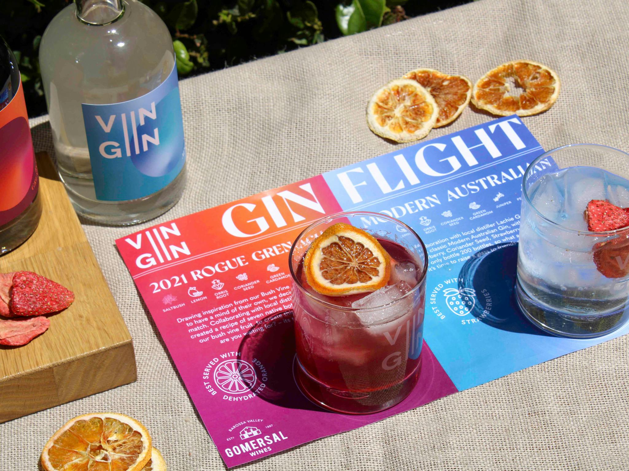 Whether by the glass, through our cheese & wine flight experience*, or over a bottle with our regional platter* – discover our full range of Gomersal Premium, Reserve, and Estate wines. And for the gin lover, discover our small batch VINGIN – a collaboration with local distiller Lachie Gunner.