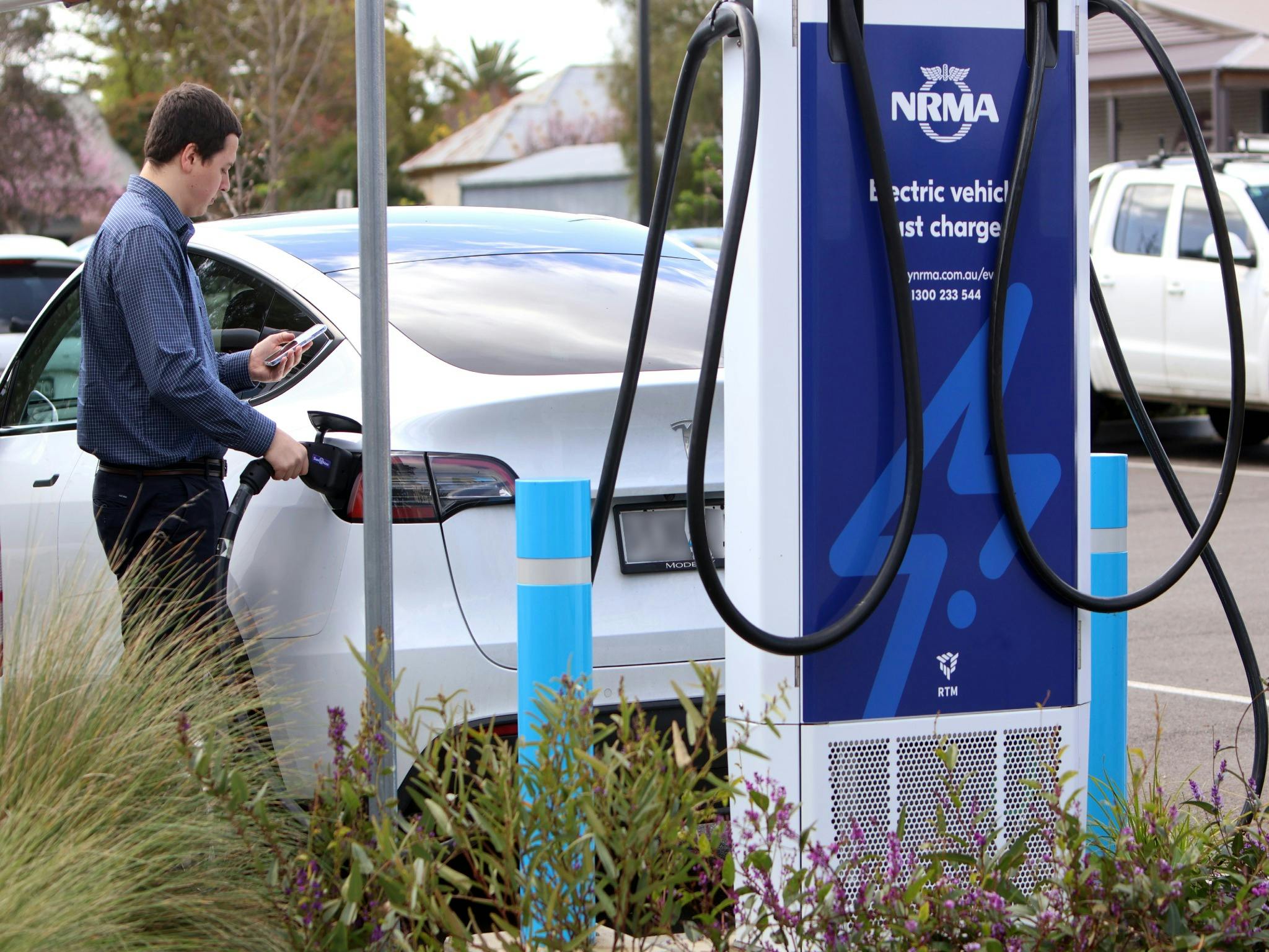 You will find an NRMA Electrical Vehicle Fast Charger with the capacity to charge two vehicles.